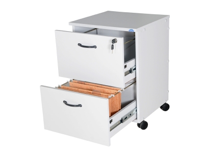 Estrutura em MDF 18mm melamina. Fundo em MDF 15mm. 2 gavetas para pasta suspensa com trilhos telescópicos. Disponível nas cores cinza, bege, branco e amadeirado.