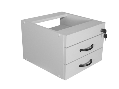 Gaveteiro fixo 2 gavetas, com estrutura em MDF 18mm melamina. Corrediças metálicas. Fechadura. Disponível nas cores: cinza, bege, branco e amadeirado.