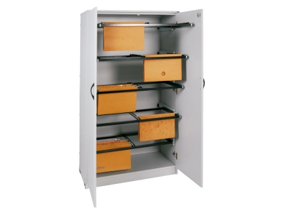 Estrutura em MDF 18mm melamina. Fundo em MDF 15 mm melamina, 02 portas altas, fechadura. Ferragens para pastas suspensas.Trilhos telescópicos. Sapatas metálicas reguláveis. Disponível nas cores: cinza, bege, branco e amadeirado.