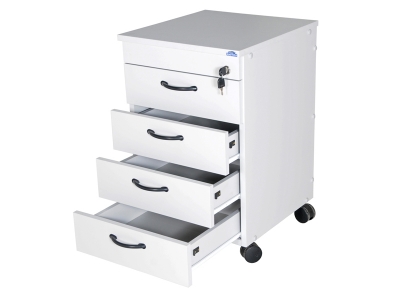 Estrutura em MDF 18mm melamina. Fundo em MDF 15mm melamina. 4 gavetas para pastas. Trilhos telescópicos. Sapatas metálicas reguláveis. Disponível nas cores: cinza, bege, branco e amadeirado.