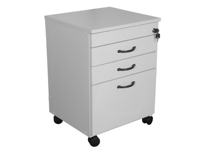 Estrutura em MDF 18mm melamina. Fundo em MDF 15mm. 3 gavetas, sendo 2 gavetas com trilhos metálicos e uma gaveta para pasta suspensa com trilhos telescópicos. Disponível nas cores cinza, bege, branco e amadeirado.