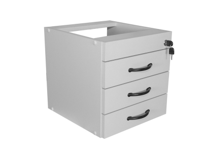Gaveteiro fixo 3 gavetas, com estrutura em MDF 18mm melamina. Corrediças metálicas. Fechadura. Disponível nas cores: cinza, bege, branco e amadeirado.